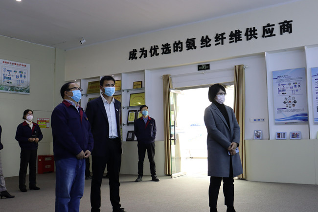 達(dá)晴一行人先后參觀了公司展廳、黨員活動(dòng)室、八期生產(chǎn)線、自動(dòng)化包裝線等。參觀過程中,講解員對(duì)氨綸公司的發(fā)展歷程,差別化產(chǎn)品、戰(zhàn)略優(yōu)勢(shì)、等進(jìn)行了詳細(xì)介紹。達(dá)晴副行長(zhǎng)對(duì)氨綸公司低溫?zé)嵴澈习本]、抗菌氨綸、驅(qū)蚊氨綸及氨綸生產(chǎn)全流程自動(dòng)化、智能化生產(chǎn)線等給予了高度評(píng)價(jià)。希望氨綸公司進(jìn)一步深入實(shí)施差別化氨綸及后道特色產(chǎn)品發(fā)展戰(zhàn)略的重大舉措,乘風(fēng)破浪,再創(chuàng)行業(yè)輝煌。