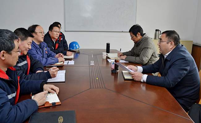 2018年3月22日,集團公司董事長楊龍、副總經(jīng)理張其海赴氨綸公司開展調研工作。楊董事長一行實地查看了氨綸公司分布式能源設備安裝、八期工程建設施工現(xiàn)場,并組織氨綸公司領導班子成員召開了座談會。