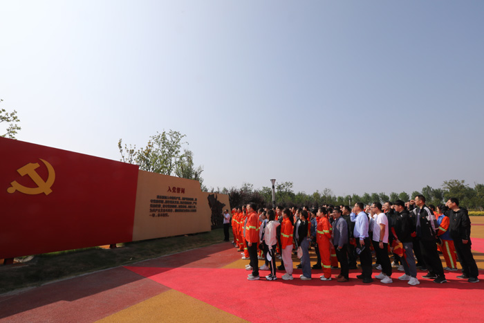 ????? 6月6日,投資公司黨委在張圩湖公園開展“為黨旗添彩 替黨徽增光”黨員奉獻日活動,全體黨員及入黨積極分子共100余名參加活動。