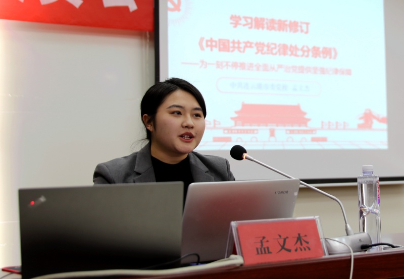 學《條例》,明紀律。特邀請市委黨校孟文杰老師,對新修訂的《中國共產(chǎn)黨紀律處分條例》進行專題輔導。孟老師從深刻理解《條例》修訂的重要亮點、準確把握《條例》修訂的主旨要義、切實抓好《條例》的貫徹執(zhí)行三個方面作了精彩解讀,并堅持理論密切聯(lián)系實際,結(jié)合與修改內(nèi)容相關(guān)的案例及視頻,提醒廣大黨員干部嚴于律己、防微杜漸,讓全體黨員干部受益匪淺。