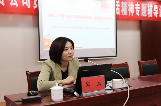 為了深入學(xué)習(xí)貫徹習(xí)近平總書記在慶祝建黨100周年大會上的重要講話精神,進一步教育引導(dǎo)全體黨員干部學(xué)黨史、悟思想、辦實事、開新局,不斷從黨史中領(lǐng)悟前進的智慧和力量。10月21日下午,青口公司舉辦貫徹建黨100周年講話精神專題輔導(dǎo)課,邀請市委黨校法政教研室主任,黨史學(xué)習(xí)教育市委宣講團成員朱云同志作專題輔導(dǎo)課。公司領(lǐng)導(dǎo)班子成員、各單位黨政工負責人、機關(guān)全體管理人員以及基層單位在職黨員參加。會議由黨委副書記梁永主持。
