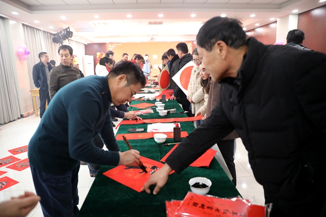 春節(jié)前夕,喜氣洋洋,為了營造祥和歡樂的節(jié)日氛圍,弘揚中國傳統(tǒng)文化,公司邀請連云港市簡帛書法協(xié)會的老師們來到青口公司,義務(wù)為民寫春聯(lián),送祝福。
