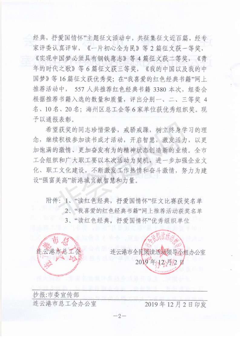 在全市職工慶祝新中國成立70周年“讀紅色經(jīng)典,抒愛國情懷”主題征文活動中。經(jīng)專家評委認真評審,我公司三位員工的文章獲得獎項,其中,萬中一的《一片初心全為民》榮獲一等獎;仲偉彬的《信仰的力量-讀《紅巖》有感》榮獲三等獎;杜娟《明月照我心》榮獲優(yōu)秀獎。